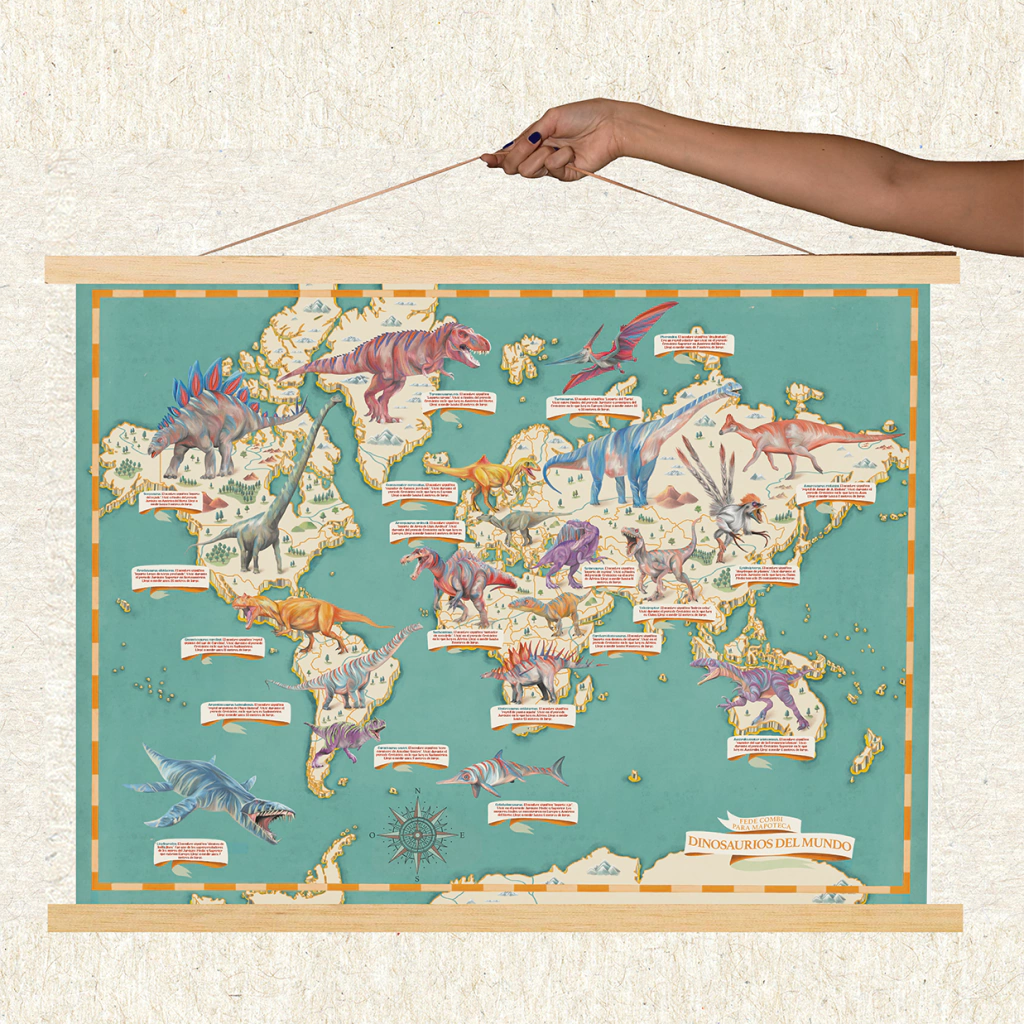 También podés conseguir este planisferio de Dinosaurios del mundo en tapiz.