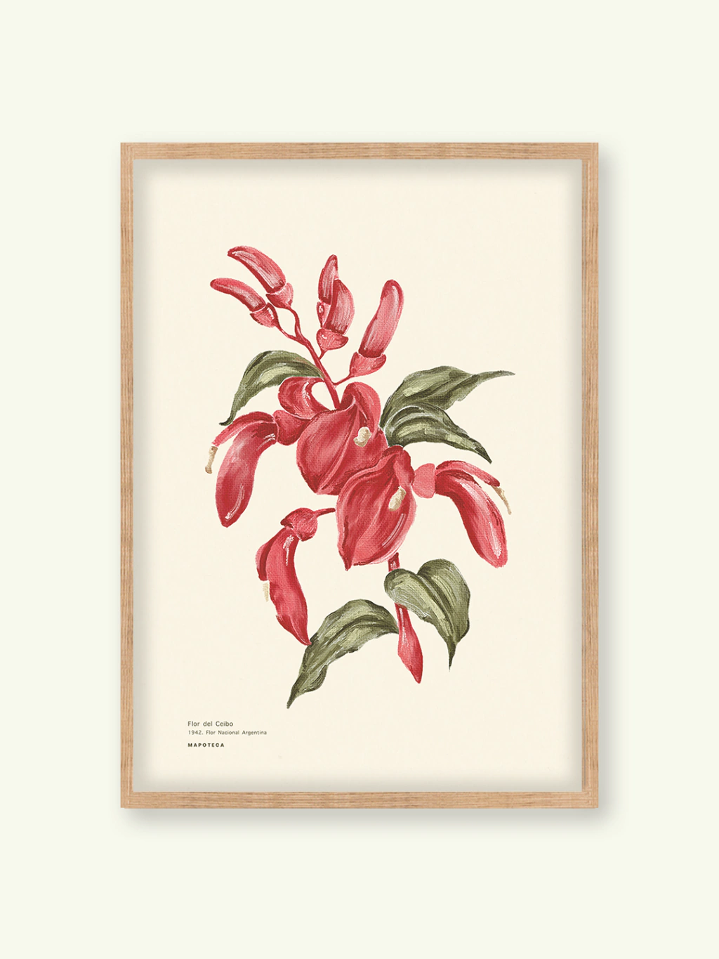 Esta obra celebra a la Flor del Ceibo, flor nacional Argentina, a través de una ilustración de trazo manual realizada con técnicas mixtas. El resultado es una pieza cálida y vibrante que rinde homenaje a la identidad natural y cultural del país.