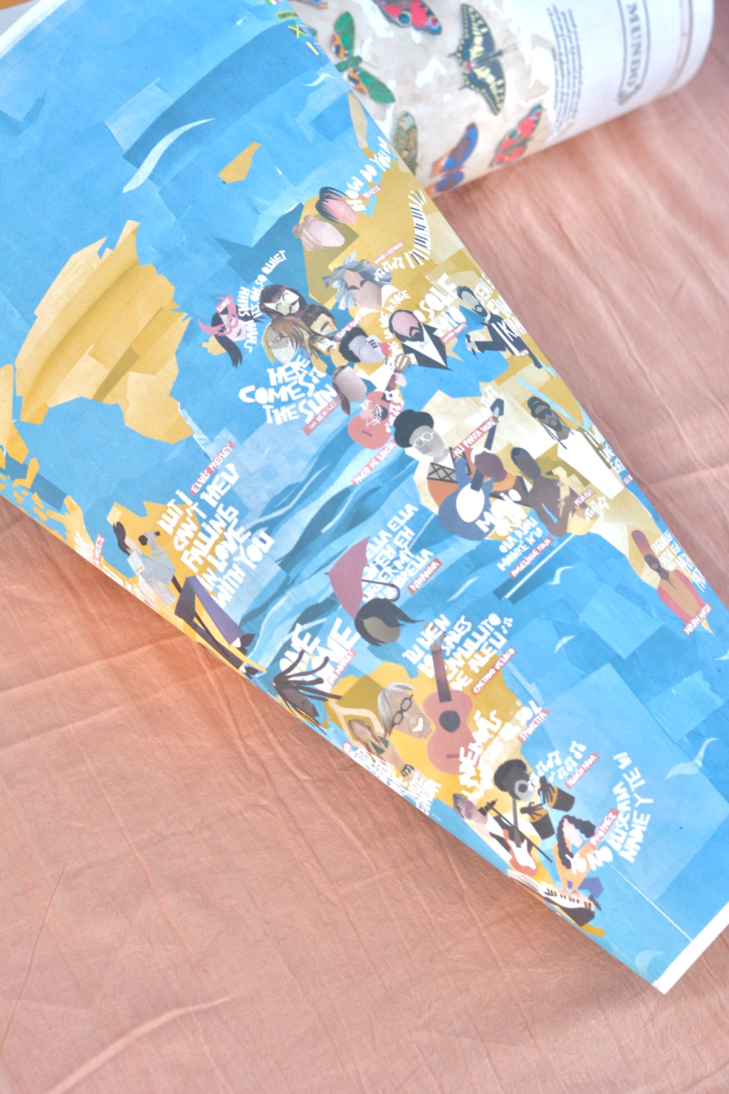 Un mapa que recorre no solo la música a través de kilómetros, países y continentes sino también a través de minutos, horas, años y siglos, pasando así por los más diversos estilos y momentos. Del 1700 a la actualidad, desde Chile hasta Japón, desde Beethoven hasta Rihanna pasando por Bob Marley, Pavarotti, Beatles, entre más artistas y una listita musical para escucharlos a todos.